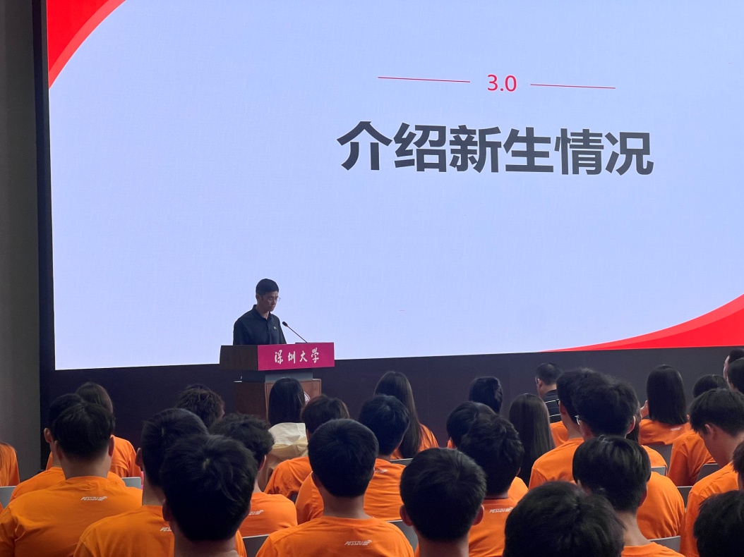 随后院党委李智军书记和新同学们分享了主题为《党建聚力赋能,湾区逐浪争先》的主题思政课。李书记从国家的体育发展布局,大湾区大未来大体育的时代机遇几个方面,多维度的阐述了深圳体育青年的责任与担当,同时也对同学们提出了一些要求,希望同学们以终为始,从零开始,勇追梦想。