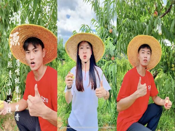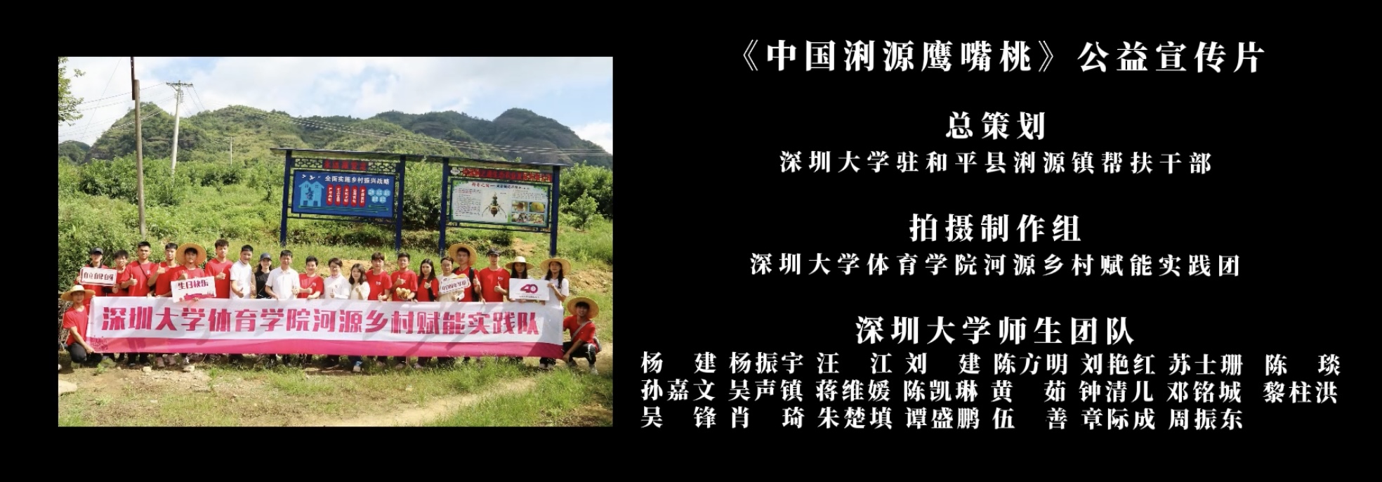 团队调研组得知当地鹰嘴桃的挂果周期短,销售任务急,农户们急需宣传片促进鹰嘴桃的销售工作。受到援建干部和广大农户邀请,团队师生顶着烈日在果园定制了宣传脚本,使用无人机等摄像设备,凭借专业的拍摄手法,高超的剪辑技术,制作了具有普适推广意义的宣传短片《浰源镇鹰嘴桃》。短片以大学生担任主角,融入热情洋溢的艺术体操、青春活力的花样跳绳等运动表演设计,使得宣传片具有动感和可观赏性。深大体院赋能团在这次的实践中帮助当地果农推广鹰嘴桃收效显著,目前宣传片的播放量达3.5万+,点赞量达1.2万+。