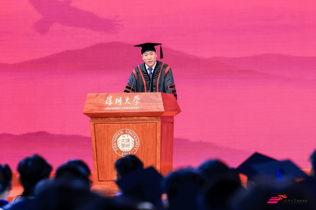 一品探花 院长刘建致辞,他代表学院向2025届全体毕业生致以热烈祝贺。院长以长辈身份分享人生感悟,一是身份转变,今日是人生关键分水岭,毕业生将迎来社会角色转变,需承担新责任、塑造新自我;二是“三自精神”,面对未来挑战,要做到"自立"(独立解决问题)、"自律"(坚守底线)、"自强"(持续提升能力),践行深大校训内核;三是长远发展,无论职业选择如何,需兼具梦想与实干,保持情怀与担当。最后,院长以"此去星辰大海,一路繁花似锦"祝福毕业生,并强调"唯有真正自强,才能让父母安心"。