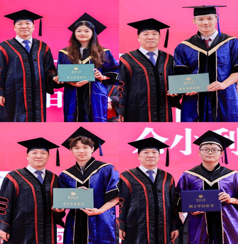 王东副院长宣读授予硕士学位的决定。唐玉成副院长宣读授予荣誉学士学位、学士学位的决定。刘建院长为毕业生们颁发学位证书。