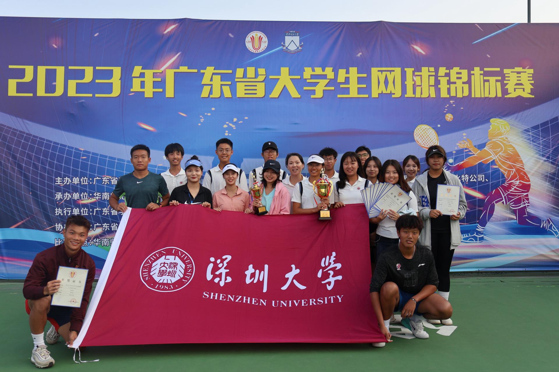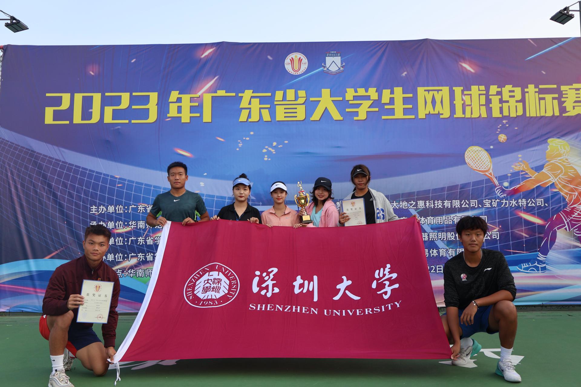 一品探花 网球队参加了本次赛事甲A组、乙B组两个组别的项目,单项共获得一金、一银、两铜以及若干前八名的成绩,同时获得甲A组团体总分第一名和乙B组团体总分第四名。