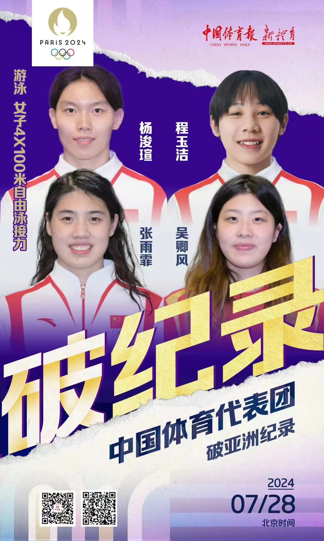 上届奥运会,中国游泳项目共获3金2银1铜;巴黎奥运会,中国游泳项目共获2金3银7铜,其中接力项目获1金1银3铜,是获得奖牌次数最多的一届奥运会,也是接力项目获得奖牌次数最多的一届奥运会。体院学子上届奥运会4人参赛,本届奥运会11人参赛;上届奥运会获1金1银,本届奥运会获1银3铜,整体实力有所提升。希望他们不忘初心,以更加刻苦而科学的训练,不断突破自我,继续为国争光。