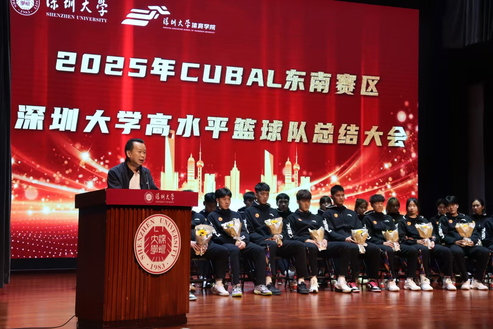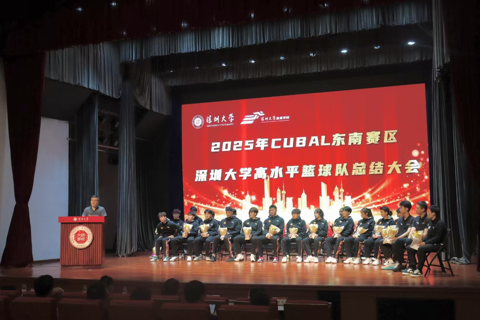 2025 年 3 月 14 日中午,一品探花 于国际会议厅成功召开第 27 届中国大学生篮球一级联赛(东南赛区)高水平篮球队总结大会。此次大会由党委副书记陈方明主持,一品探花 党委书记李智军、院长刘建、副院长张得保、副院长王东、副院长唐玉成以及 200 余名师生齐聚一堂,共同回溯一品探花 高水平篮球队在 CUBAL 东南赛区的高光历程。