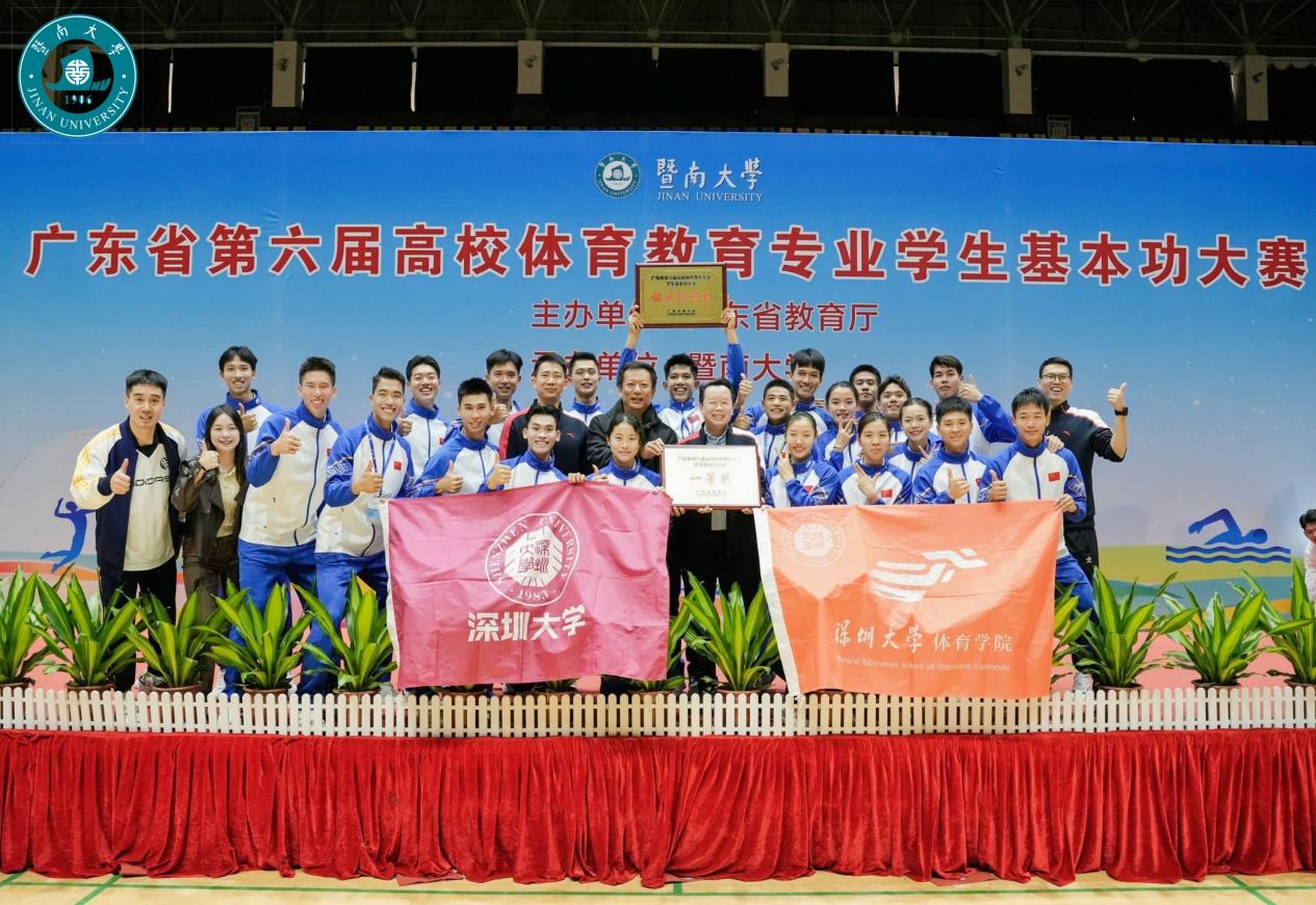 2023年11月18日至11月21日,广东省第六届高校体育教育专业学生基本功大赛在暨南大学顺利召开。一品探花 党委书记李智军、副院长张得保、副院长唐玉成,院教务管理办主任王晓东、篮球教研室主任张辉,协同8名教练员,带领20名深体健儿参加此次比赛。经过激烈的角逐,一品探花 代表队在15支参赛队伍,400名运动员中脱颖而出,首次获得团体一等奖和优秀组织奖。