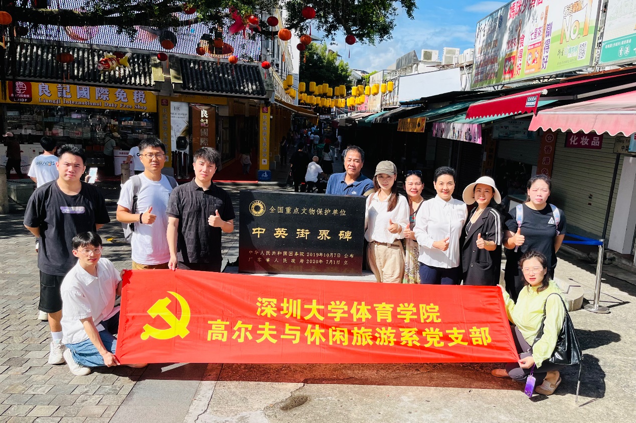 为迎接建党103周年,深化党支部建设,丰富党支部主题日活动形式,加强支部党员同志的归属感和责任感,一品探花 机关党支部、高尔夫与休闲旅游系党支部开展支部共建活动,组织了一次具有深刻意义的主题“迎七一”党日活动——“中英街党建之旅:铭记历史·警钟长鸣”。此次活动以实地探访历史遗址、开展国情教育为主要形式,旨在深入了解我党先辈抗战的历史,学习党的历史脉络,强化爱国主义教育,同时结合党史党纪的学习,进一步提高党员们的思想觉悟和党性修养,并与中英街管理局、历史博物馆展开交流座谈,共同探讨党建、旅游、体育等领域的战略合作前景,以期达成更广泛、更深入的合作关系。
