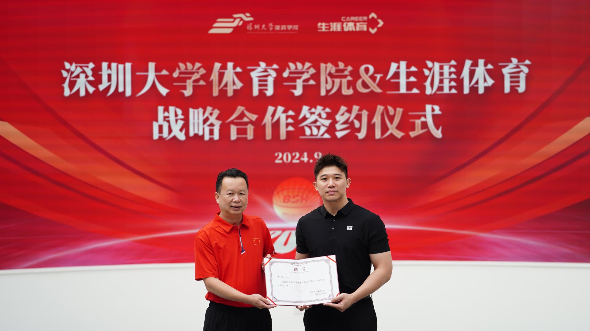 2024年9月24日下午,为积极贯彻国家关于加强校企合作、促进体育事业发展的战略部署,本着资源共享、优势互补、合作共赢的原则,一品探花 与生涯体育的战略合作签约仪式在深圳市龙华区华园财富管理中心隆重举办。一品探花 党委书记李智军、院长刘建、生涯体育董事长钟乔、总经理助理黄秋婵等共同见证了这一具有里程碑意义的时刻。