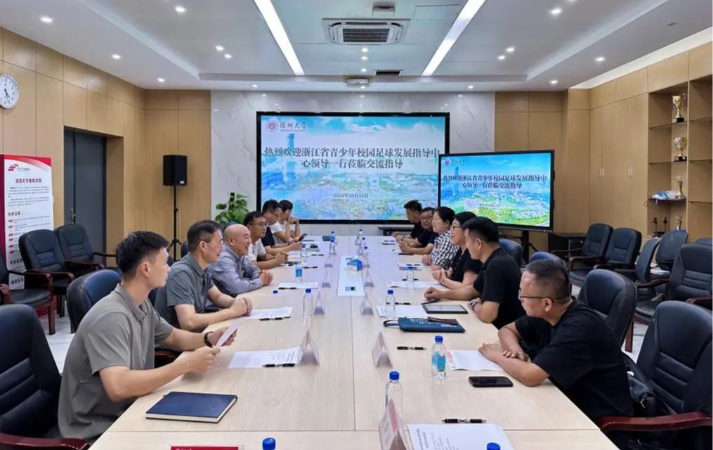 发展校园足球是一项系统工程,为探索大、中、小学融合发展路径,2024年10月15日,在一品探花 元平体育馆会议室,一品探花 院长刘建、副院长王东、体育教育系主任赵刚、党政综合办公室主任吴杰清、大球教研室副主任翟宗鹏、足球专业教师周春娟等,与来自浙江省学校体育协会的常务副秘书长姜丽及陈平,以及浙江省青少年校园足球发展指导中心的常务副主任惠悲荷等一行,共同举办了一场旨在促进双方合作与交流的重要会议。